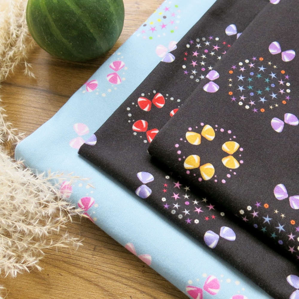 いずれもデジタルプリントのさらさらスムース、生地のベース色は白または生成り色です。