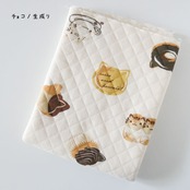キルトニット にゃんこスイーツ チョコ/生成り 80cmカット