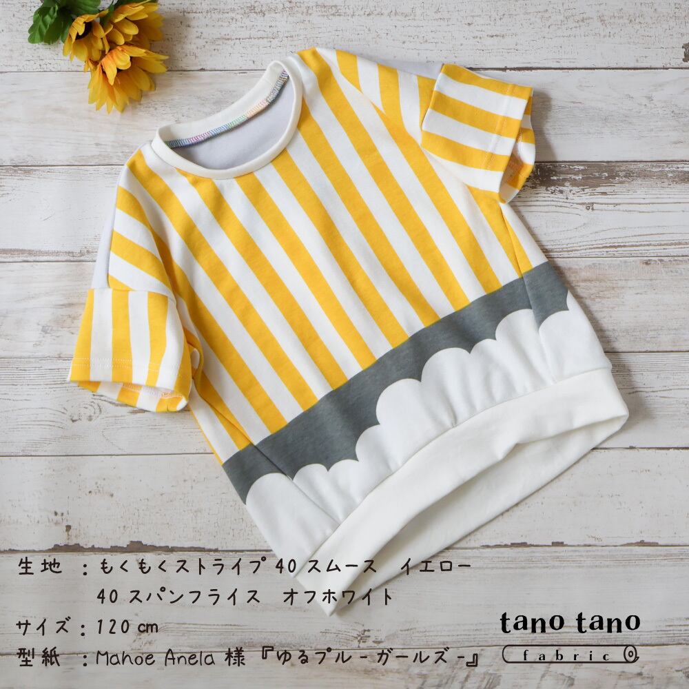使用生地:もくもくストライプ40スムース イエロー