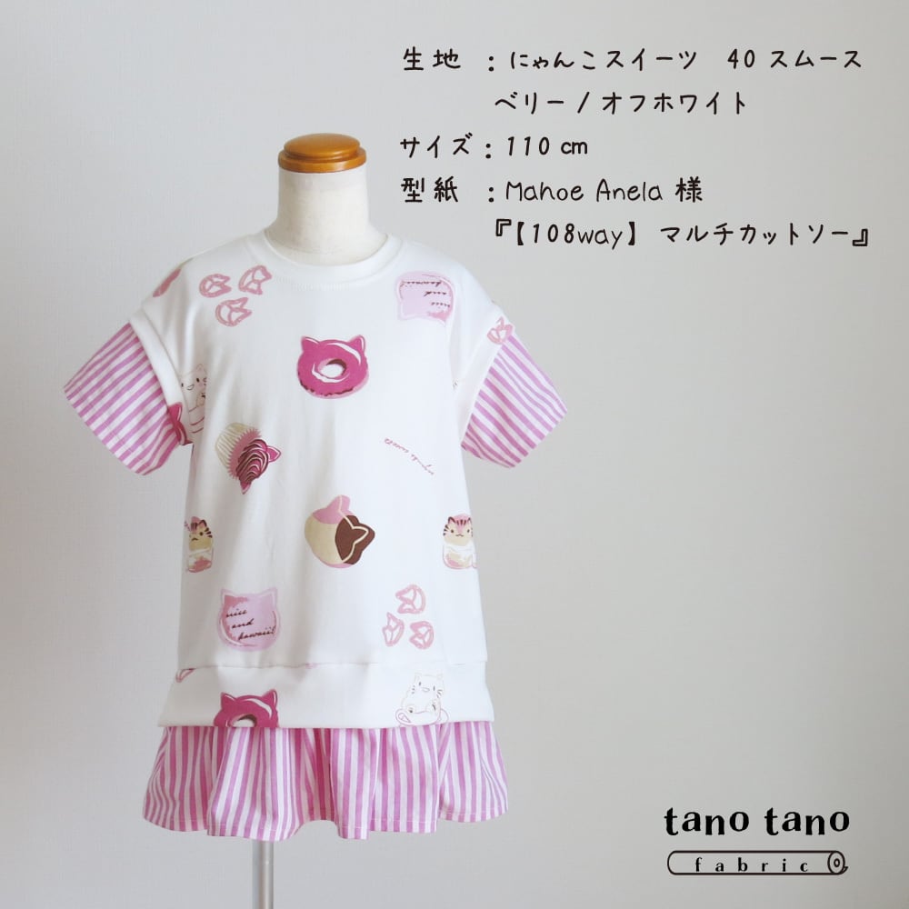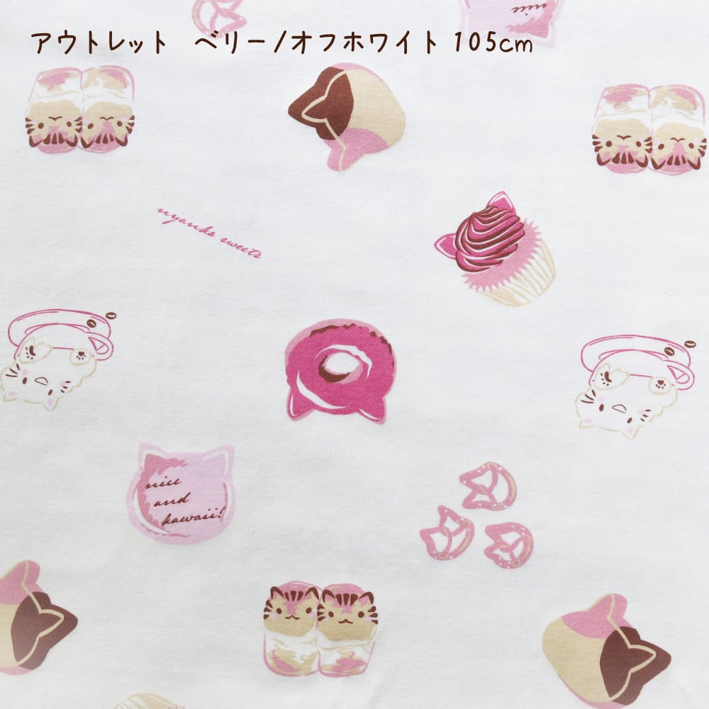 アウトレット 40スムース にゃんこスイーツ ベリー/オフホワイト 105cmカット