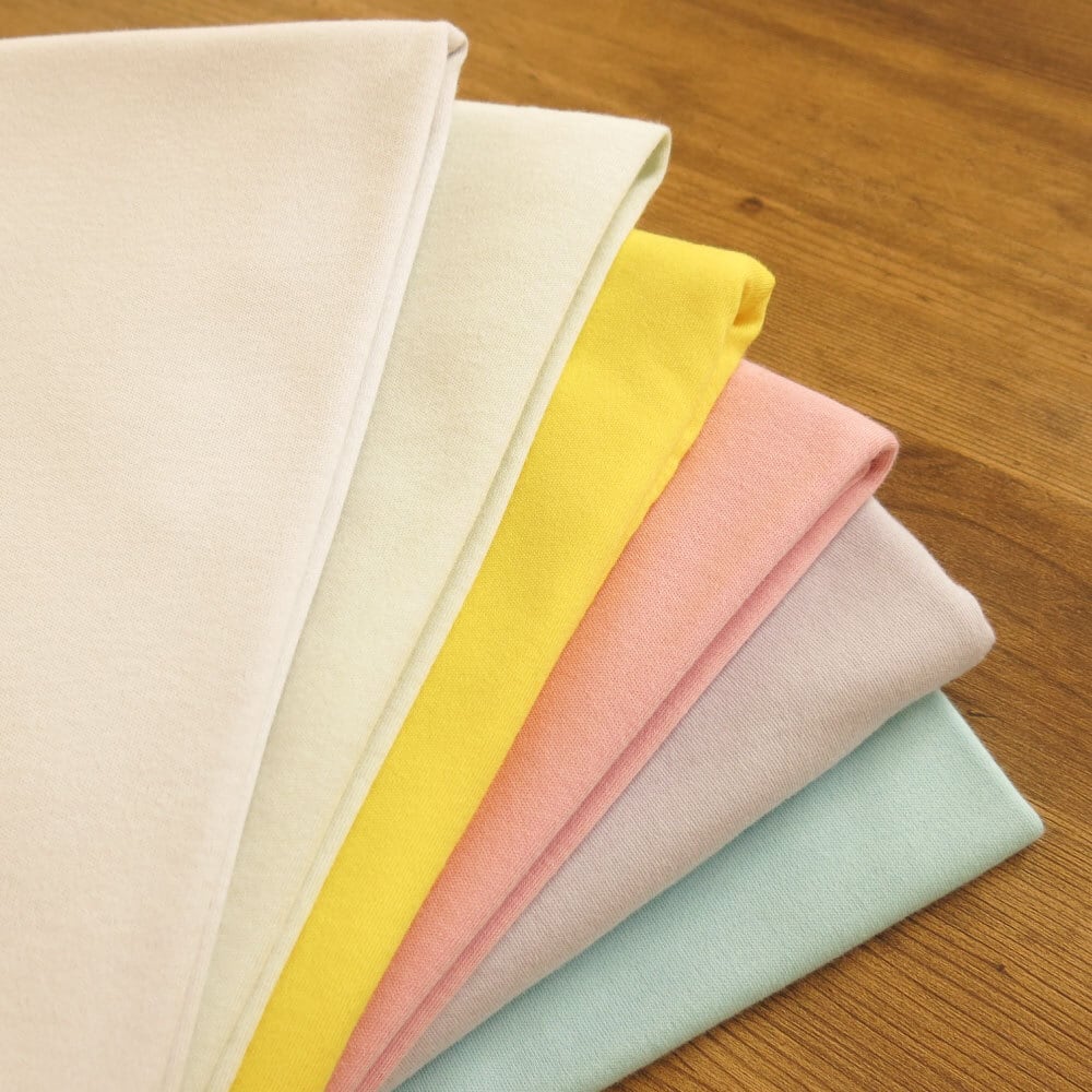 端が丸まりにくいため、ニットソーイング初心者さんにも扱いやすい素材です。